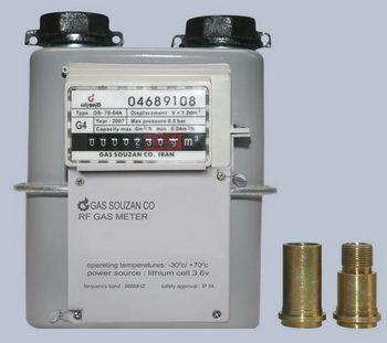 G4A RF (счетчик газа с высокочастотным радиопередатчиком) изготовлены Производственно-промышленной компанией "Газ Сузан" И. Р. Иран, и предназначены для измерения и учета объема прошедшего через счетчик природного газа, паровых фаз бутана, пропана, их смесей по ГОСТ 5542-87, а также других неагрессивных газов. Основная область применения счетчиков - коммунально-бытовое хозяйство, кроме того они могут использоваться и в других сферах деятельности, требующих учета потребления газа. Счетчик включает в себя: электронную плату и литиевую аккумуляторную батарею. Электронная плата принимает сигнал с максимальной частотой 2 Герца. Встроенный порт дает возможность подключения к компьютеру, и считывания информацию. Литиевая аккумуляторная батарея имеет объем 2400 миллиампер в час. Электронная плата специально создан для мембранных счетчиков "Газ Сузан", что дает возможность подключение его к счетчику без проводов или других подключающих элементов, исключает возможность внешних магнитных воздействий, а в случае такого возможного воздействия сигнализирует об этом. Высокочастотный радиопередатчик (система отправления и получения информации) обеспечивает съем и передачу информации из электронного сумматора на расстоянии до 500 м. от счетчика в закрытом пространстве и до 800 м. в открытом пространстве. Электронная плата "Газ Сузан" имеет возможность сохранения данных в памяти в течение 12 месяцев.