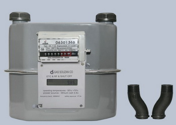 G6C ЕТC & RF & SHUT OFF (счетчик газа с электронным корректором объема газа по температуре, с высокочастотным радиопередатчиком, с клапаном отсекателем ) изготовлены Производственно-промышленной компанией "Газ Сузан" И. Р. Иран, и предназначены для измерения и учета объема прошедшего через счетчик природного газа, паровых фаз бутана, пропана, их смесей по ГОСТ 5542-87, а также других неагрессивных газов. Основная область применения счетчиков - коммунально-бытовое хозяйство, кроме того они могут использоваться и в других сферах деятельности, требующих учета потребления газа. Электронный корректор по температуре обеспечивает приведение прошедшего объема газа через счетчик к нормальным условиям +20 °C и 760 мм ртутного столба (давление газа вводится вручную). Учитывая тот факт, что при отклонении температуры от нормальной (+20 °C) на 3 градуса, реальный объем газа отличается от нормального на 1 процент, счетчик с электронным корректором по температуре является предпочтительным для поставщиков газа. Размеры корректора 2.87 х 11 х 11 см. Корректор включает в себя: электронную плату, литиевую аккумуляторную батарею и жидкокристаллический монитор. Электронная плата принимает сигнал с максимальной частотой 2 Герца. Встроенный порт дает возможность подключения корректора к компьютеру, и считывать информацию. Литиевая аккумуляторная батарея имеет объем 2400 миллиампер в час. Жидкокристаллический монитор также показывает, закрыта или открыта запорная арматура на потоке газа. В рабочем режиме корректор потребляет 8 миллиампер, в пассивном режиме потребление составляет 16 микроампер. Используемые в корректоре температурные сенсоры возможность коррекции с точностью 0,02 градусов Цельсия с рабочей температурой от -55 до 150 градусов Цельсия. Корректор специально создан для мембранных счетчиков "Газ Сузан", что дает возможность подключение его к счетчику без проводов или других подключающих элементов, исключает возможность внешних магнитных воздействий, а в случае такого возможного воздействия сигнализирует об этом. Базовая температура +20°C. Высокочастотный радиопередатчик (система отправления и получения информации) обеспечивает съем и передачу информации из электронного сумматора на расстоянии до 500 м. от счетчика в закрытом пространстве и до 800 м. в открытом пространстве. Клапан отсекатель, устанавливаемый в корпусе мембранного счетчика обеспечивает перекрытие потока газа абоненту по команде с дистанционного пульта. Электронный корректор "Газ Сузан" имеет возможность сохранения данных в памяти в течение 12 месяцев.