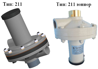 Мембранный предохранительный клапан типа 211 предназначен для предохранения (защиты) газовых установок и оборудования от превышения давления. На газовых установках (ГРС, ГРП, блоках редуцирования, рампах и др.) монтируется за регулятором давления по направлению потока газа. Конструктивное решение с пружиной и мембраной обеспечивает высокую точность поддержания давления. Изготовляются два вида типоразмеров: - тип 211 юниор (R1/2"- R3/4") - рекомендуется применять на газовых рампах и станциях малой пропускной способности; - тип 211 (R3/4"- R1") - рекомендуется применять на газовых рампах и станциях большей пропускной способности. Мембранный предохранительный клапан предназначен для работы с природным газом, пропан-бутаном, воздухом, азотом и другими неагрессивными газами.